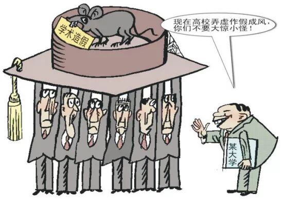 职称学术:混迹于学术江湖者,在学问上并无所长,但在搞职称学衔上别有功夫。学衔是行走学术江湖的名片,多多益善。即便是胸无点墨,能够在名片上印上一大堆教授、博导、某某学会职务之类,这就是足以唬人的专家之流了。不管这些职称学衔的背后是权力学,是关系学,还是滥竽充数的学术赝品,只要把职称学衔搞到手就是学问做到了。所以,一切学问都是围绕着职称评定,搞关系,攀领导,找评委,拉票数,凑文章,拼成果,踩同事,吹自己,以假乱真,以劣充好,鱼目混珠,把学术标准的职称工作变成了人事关系的大演练,使劣币驱除了良币。于是,就有了一批讲课不知所云的教授,给学生开不了题的博导,学无所长的专家。