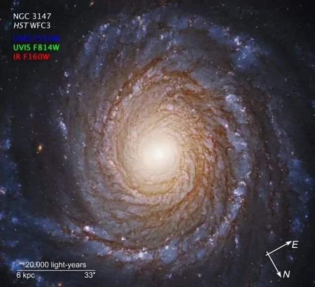天文学家利用哈勃太空望远镜,在距离地球1.3亿光年的旋涡星系NGC 3147中心发现了一个意想不到的物质薄圆盘,围绕着一个超大质量黑洞。在这样一个低亮度的活动星系中,黑洞盘的存在让天文学家感到惊讶。NGC 3147等特定类型星系中黑洞被认为是“饥饿”的,因为它们没有足够的引力捕获物质来定期供给它们。因此,令人困惑的是,有一个薄圆盘围绕着一个饥饿的黑洞。