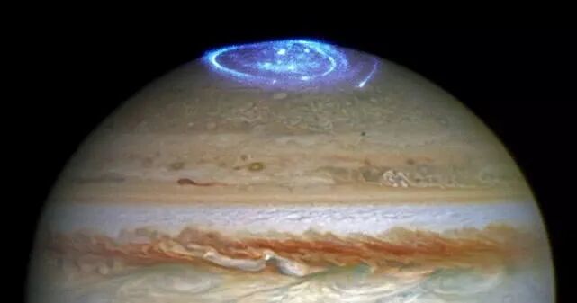 与地球上的极光相似,木星极光以两个巨大的椭圆形环围绕两极展开。它们是由一个巨大的电流系统驱动,这个电流系统将极地光区和木星的磁层连接起来。磁层是行星周围受其磁场影响的区域。
