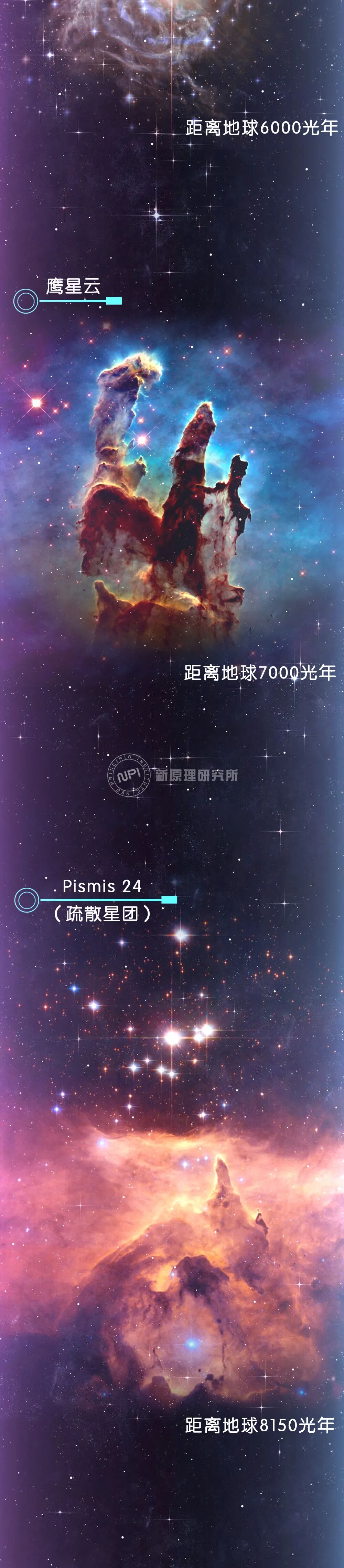 HST的红外探测器穿透了巨大的、由气体和尘埃组成的湍流云,那里孕育着成千上万颗恒星的生命。HST对这些星云的观测揭示出由年轻的、异常明亮的恒星辐射塑造出的奇异景观。观测表明,恒星的诞生是一个剧烈的过程,会产生强烈的紫外线辐射和冲击波。辐射会清除掉孕育恒星的云团中的空洞,并侵蚀孕育新生恒星的巨大气体柱中的物质。