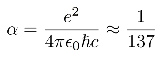 精细结构常数(α)是自然界的一个具有深刻内涵的常数,它是一个无量纲常数,与光速、普朗克常数以及电子电荷有关,约等于1/137。精细结构常数是对自然界中的基本力之一——电磁力(另外三种为引力、弱核力和强核力)的一种度量,在电磁力的作用下,电子绕着原子中的原子核旋转,如果没有电磁力,所有的物质都会分崩离析。
