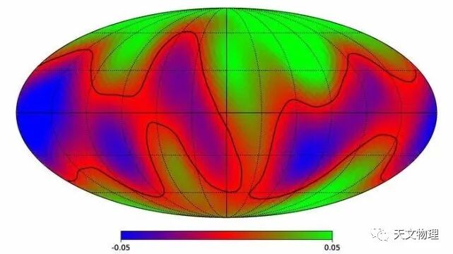 研究发现,地球光线曲线的第二个主要成分与被照亮半球陆地面积密切相关(r^2=0.91),结合观察几何,重构地图成为一个线性回归问题。通过分析得到的曲线,并与原始图像进行比较,发现曲线的哪些参数与陆地和云层覆盖相对应。再挑选出与陆地面积最密切相关的参数,并将其调整为地球24小时自转,这就给出了一张轮廓图,从光年之外看,地球光曲线是什么样的。黑线代表地物参数,大致对应各主要大陆的海岸线。这些是进一步的绿色,以提供一个粗略的代表非洲(中心),亚洲(右上),北美和南美(左),南极洲(底部)。