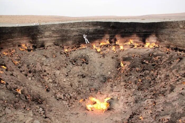 研究人员在土库曼斯坦天然气火山口的土壤样本中寻找微生物,这里也被称为“地狱之门”(Door to Hell)。来源:Stefan Green/XMP