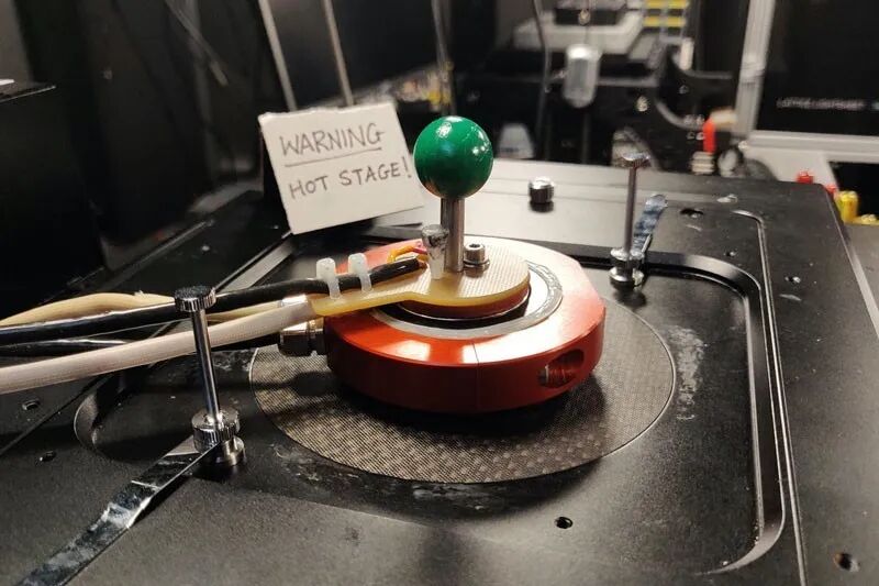 英国一个研究团队建造了这个加热显微镜系统,用来拍摄嗜热微生物硫化叶菌(Sulfolobus acidocaldarius)的活细胞图像。来源:A. A. Pulschen et al./Curr. Biol. (CC BY 4.0)