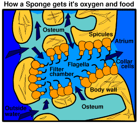 海绵的古老从它们的身体构造就可以看出来:成年海绵的身体非常简单,它们缺乏和人类类似的真正的“组织”或“器官”,没有消化道、神经或肌肉。它们的身体是一根硬质直肠的样子,有一个进水口和一个出水口,水通过这个管道后其中的有机物就被过滤走了。