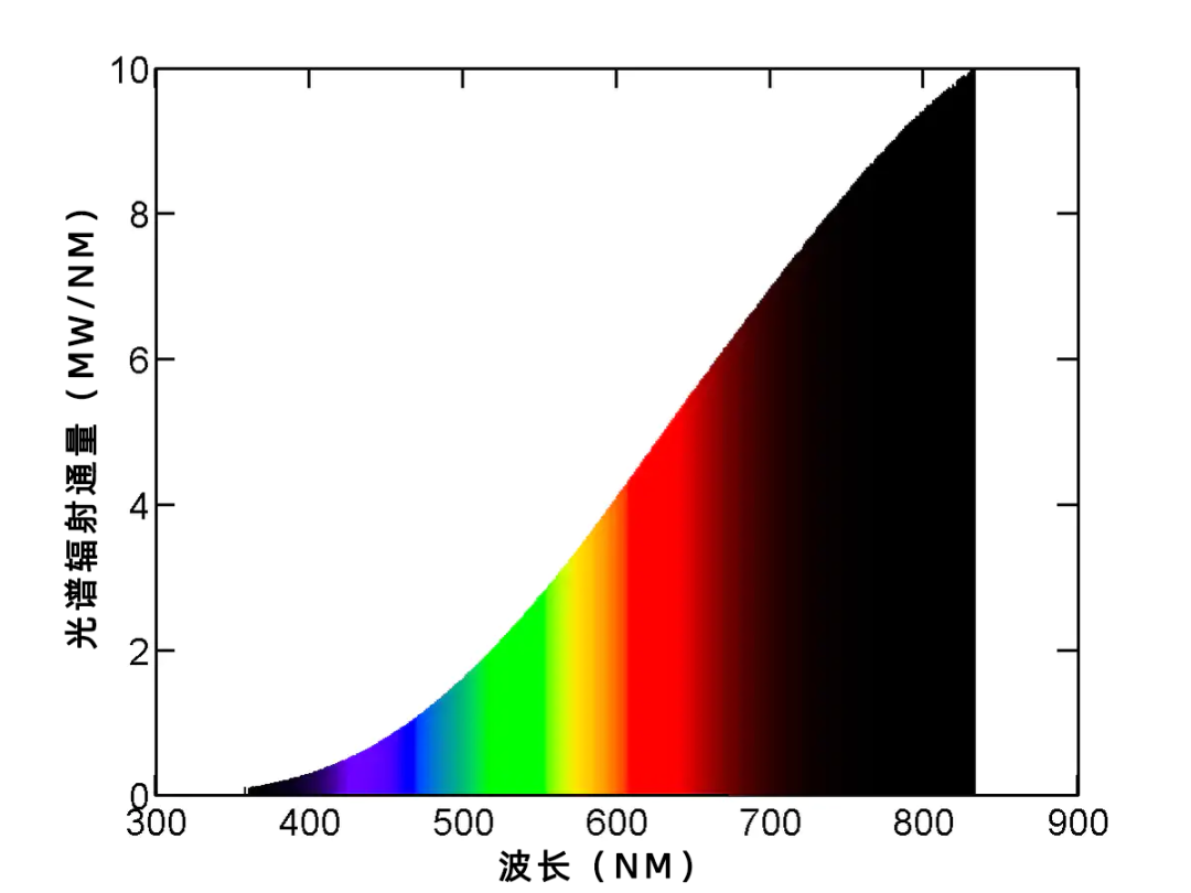 25瓦功率的白炽灯泡的光谱功率分布展示了它所发出的光的波长。| 图片来源:Thorseth / Wikimedia Commons