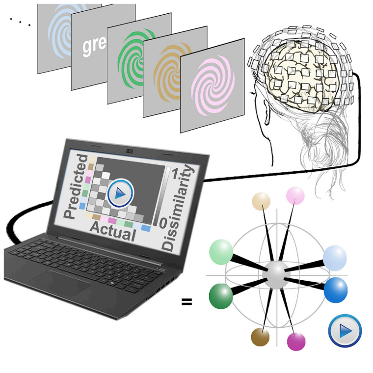这正是科学家Bevil ConwayDanny Garside和团队所进行的工作。他们使用脑磁图(MEG)监测了大脑神经细胞进行通讯时产生的微小磁场,并使用机器学习对不同颜色的大脑反应进行分类,然后从大脑活动中解码出参与者看到的颜色。也就是说,研究人员可以通过测量大脑中发生的事情来确定颜色。结果表明,每种颜色都与大脑活动的不同模式有关