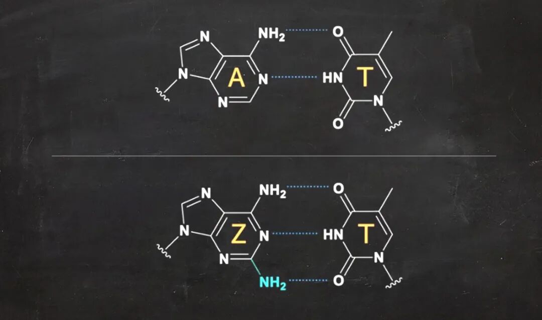 在进一步分析后,他们发现在这种噬菌体中,A被Z所取代,与T形成了一种更强的键合