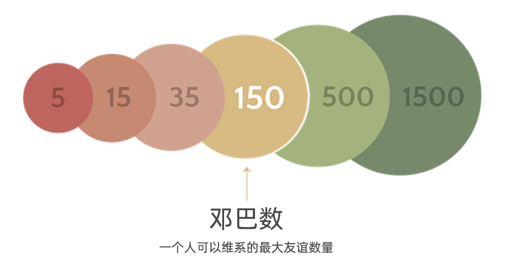Dunbar的研究表明,我们只能维持5个亲密的朋友,但可以知道的名字多达1500人。