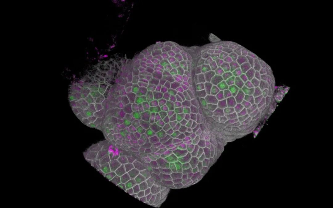 图中所显示的是茎分生组织,绿色标记的细胞即将进入DNA复制阶段,而洋红色标记表示KRP4的积累。|图片来源:John Innes Centre