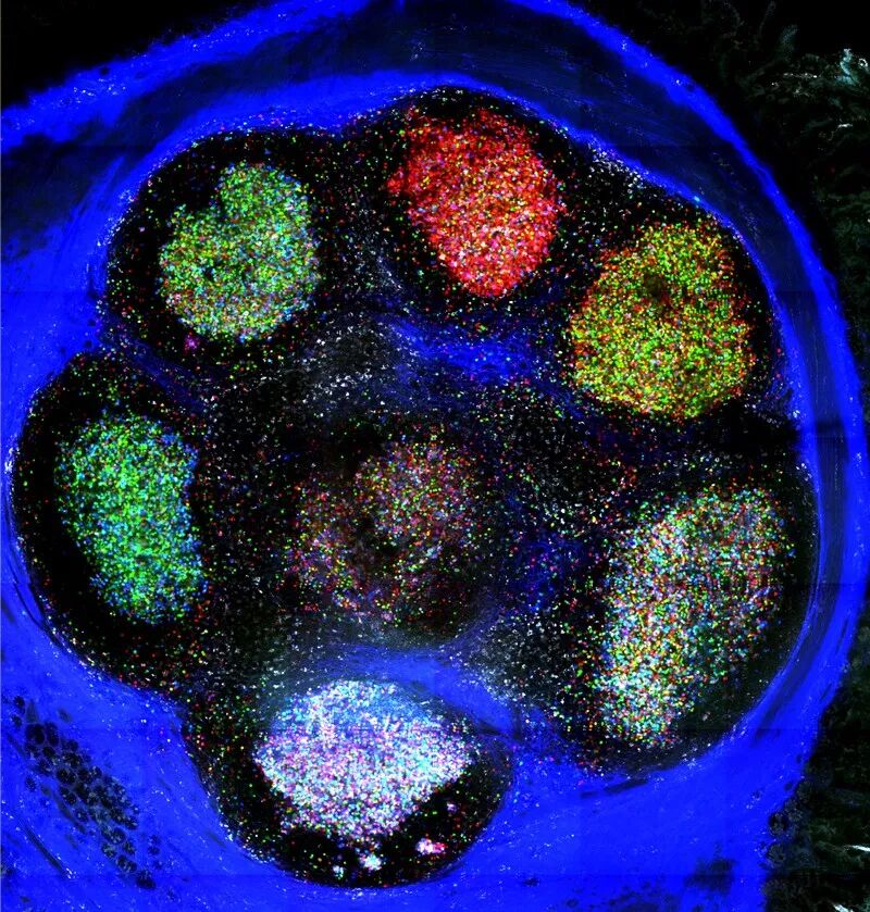 Gabriel Victora回想起自己在纽约大学(New York University)攻读研究生时,对那些如万花筒般绚烂的大脑图片大感震撼,每个细胞颜色都不一样。但Victora的研究集中于生发中心(淋巴结的一种微观结构,免疫细胞在此分裂和生长)。“我们没有立即想到可以用这项技术,”如今已是纽约市洛克菲勒大学(Rockefeller University)免疫学家的Victora说,“我记得当时在想,‘可惜是那是在大脑里’。”