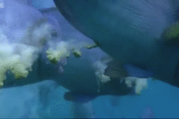 但它们吃的很粗暴,经常大力出奇迹,直接啃下一大口珊瑚: