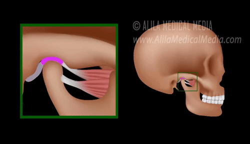 颞下颌关节(TMJ),头骨的左右侧各有一处(图片来源:Alila Medical Media)