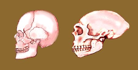 现代人类(左)的下颌骨短,面部也就不太突出,位置几乎在脑颅的正下方(图片来源:Alec Solomita)