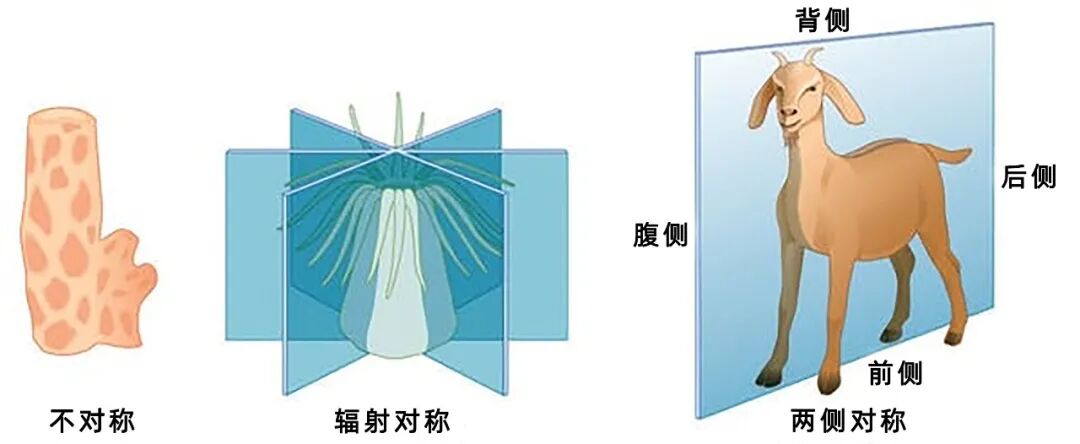 同一物种的动物通常具有相同的对称性,人类和山羊都是两侧对称动物,都是左右两侧互为镜像。| 图片来源:CNX OpenStax / Wikemedia Commons