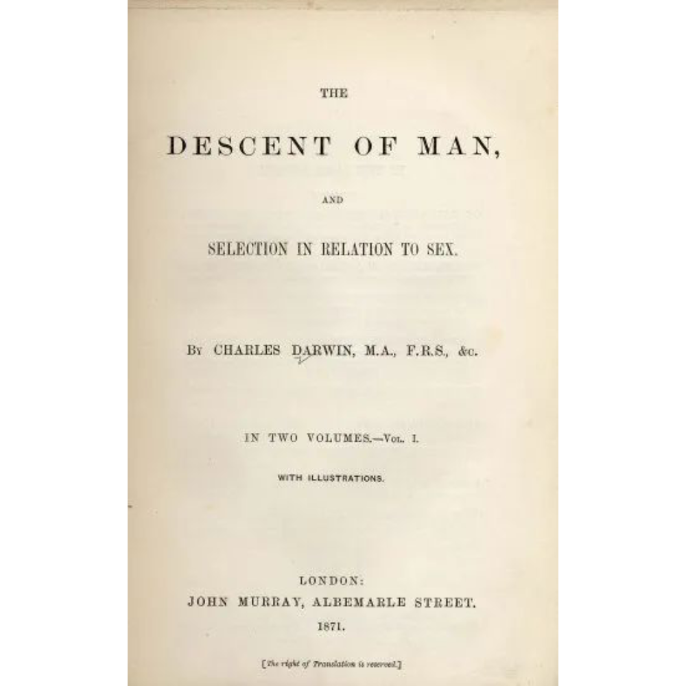 事实上,在《物种起源》于1859年出版后,达尔文的研究并没有就此止步。他随后在1871年出版了另一本在学术界具有重要影响力的作品,名为《人类的由来及性选择》