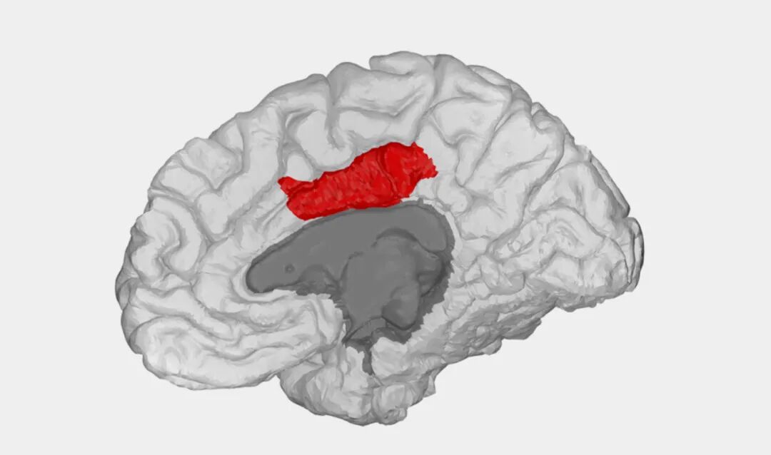 人脑中后扣带(红色)大致位置。| 图片来源:Razvan V. Marinescu/Wiki Commons
