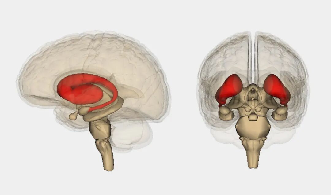 纹状体(红色)。| 图片来源:Life Science Databases(LSDB)/Wiki Commons
