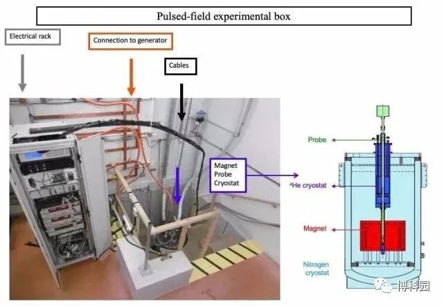 在实验中产生了高达60特斯拉的脉冲磁场,大约是地球磁场的100万倍,这些脉冲的总持续时间为300毫秒。然后,研究人员使用由电容器组制成的发电机,最大能量为14兆焦耳,但充电功率为3兆焦耳,产生数千安培的电流,并将其发送到电阻磁铁。目前,世界上只有几个位于美国洛斯阿拉莫斯、日本东京、德国德累斯顿、中国武汉和图卢兹的设施支持这种强磁场研究。