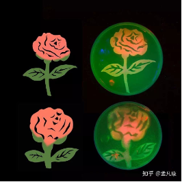 和其他的培养皿作画不同的是,这次的实验可以轻松地在玫瑰花瓣处做出清晰或模糊的边缘、纯色或渐变的效果,这是传统科学与艺术难以达到的。