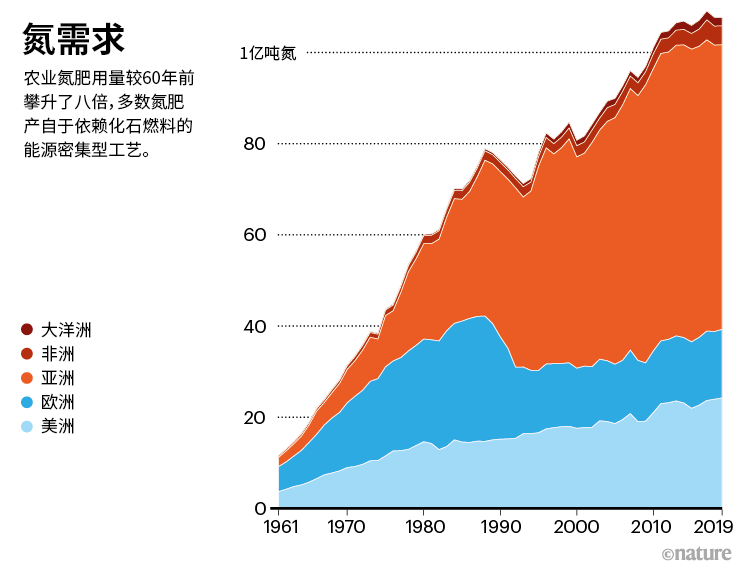 Larsen说这很不容易。从工程学的角度来看,“尿液是一种惹人生厌的溶液”。除水之外最大的组分是尿素——一种富含氮的化合物,作为蛋白质代谢的副产物。尿素本身是有用的:合成尿素是常用的氮肥(见“氮需求”)。但棘手之处在于,尿素与水结合时会转化为氨气,产生尿液的特殊气味。若不加控制,臭烘烘的氨气会污染空气,并带走宝贵的氮。这个反应被称为尿素水解,在广泛存在的脲酶催化下仅需几微秒,脲酶因而成为已知的最高效的酶之一[4]。