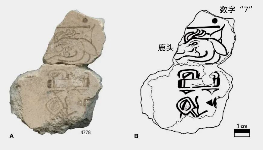 研究人员发现,在两块可以拼在一起的墙壁碎片中,一块上的记号包括了一种已知的用来代表日期的符号,也就是鹿头上方一条线之上的一个点。它被称为“7鹿”,代表了仪式历法的260天中的一天