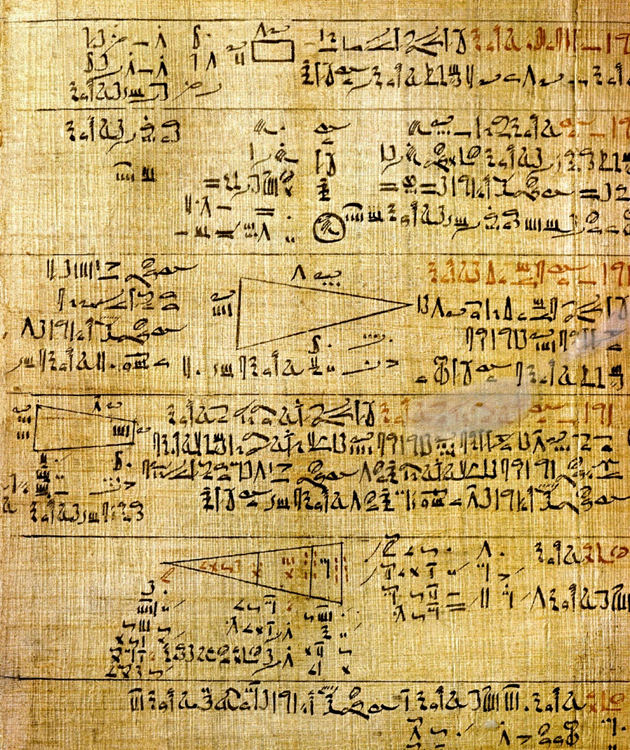 考古发现,数千年前的古埃及人就已经熟练掌握了相当程度的数学知识。纵然历经沧海桑田,仍有文献流传了下来,其中最著名的就是莱因德古本(Rhind Mathematical Papyrus)和莫斯科古本(Moscow Mathematical Papyrus)。这些莎草纸上记录了数十个问题及解答,其中一题是:如何让 个人平分 片面包?就其涉及的数学而言,这个问题对于今天的我们而言似乎过于显然了:只需要每人分 片就行了。但是考古学家们发现,在古埃及,并没有 这个数字!在现存文献中,除了 和 以外,所有的分数都是以 的形式出现的。这可能是因为,在分面包的时候,将一块面包平均分成 份更容易操作。古埃及人在计算的时候,似乎需要借助分数表,这也在上述古本中占据了一定篇幅。而对于上面的问题,古埃及人给出的答案是