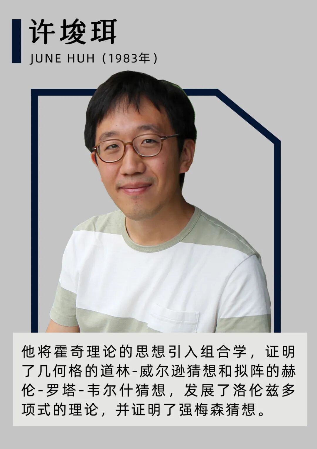 利用霍奇理论、热带几何和奇点理论的方法,许埈珥和他的合作者改变了几何组合学领域。许埈珥和王博潼利用代数几何和相交理论的工具,证明了可实现拟阵的道林-威尔逊猜想。