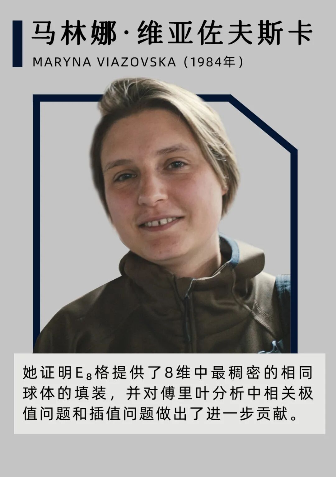 其他任何维度上的最稠密填装一直处于未知状态,直到2016年,维亚佐夫斯卡证明了E₈格在8维空间中具有最稠密的填装。不久后,她与科恩(Cohn)库马尔(Kumar)米勒(Miller)拉德琴科(Radchenko)一起,证明了利奇格在24维空间中具有最稠密填装。