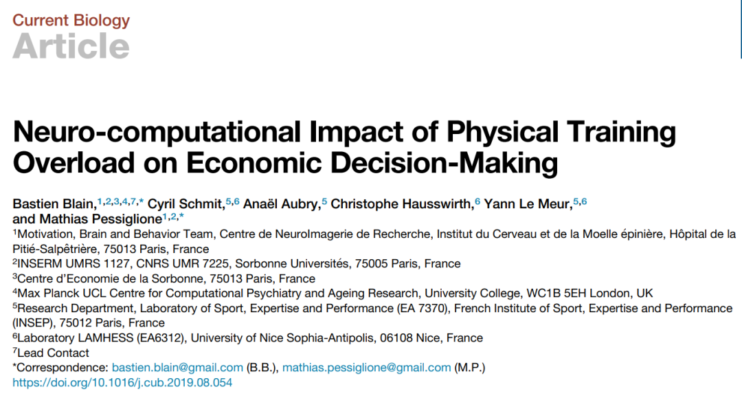 三年前,Mathias Pessiglione 团队同样发表在 Current Biology 上的研究表明,过度运动也会导致精神疲劳,引起包括大脑前额叶皮层的活动减少,而该区域对于制定决策至关重要。受试者的行为也会表现得更加冲动,并倾向于选择立即获得奖励,而不是花费更长时间获得的更大奖励。