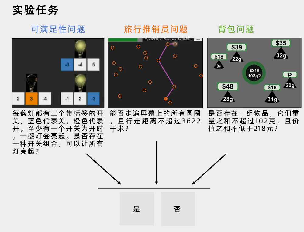 研究人员专注于三种类型的实验任务,它们都属于NP完全问题(NP-complete)的一类更广泛的复杂问题。