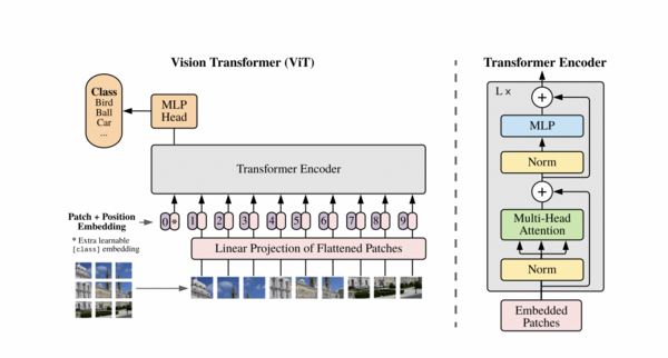 ViT(Vision Transformer)是一种将 Transformer 应用于图像分类的模型。在 ImageNet 等基准数据集上取得了与卷积神经网络(CNN)相媲美的结果。