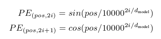 我们可以给每个词向量加上一个有顺序特征的向量,发现sincos函数能够很好的表达这种特征,所以通常位置向量用以下公式来表示:
