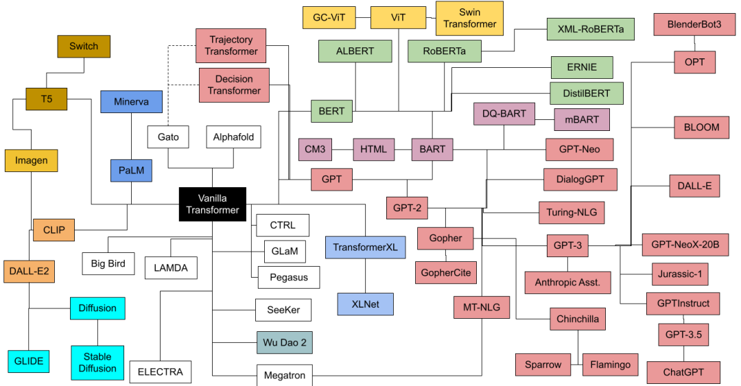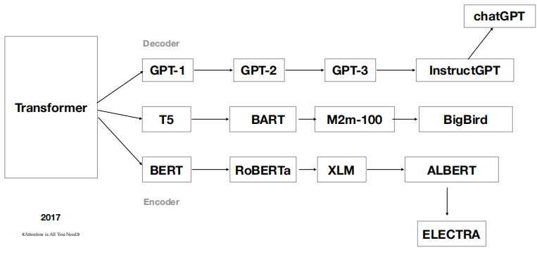 技术谱系上来看,chatGPT只是Transformer家族中的一员。