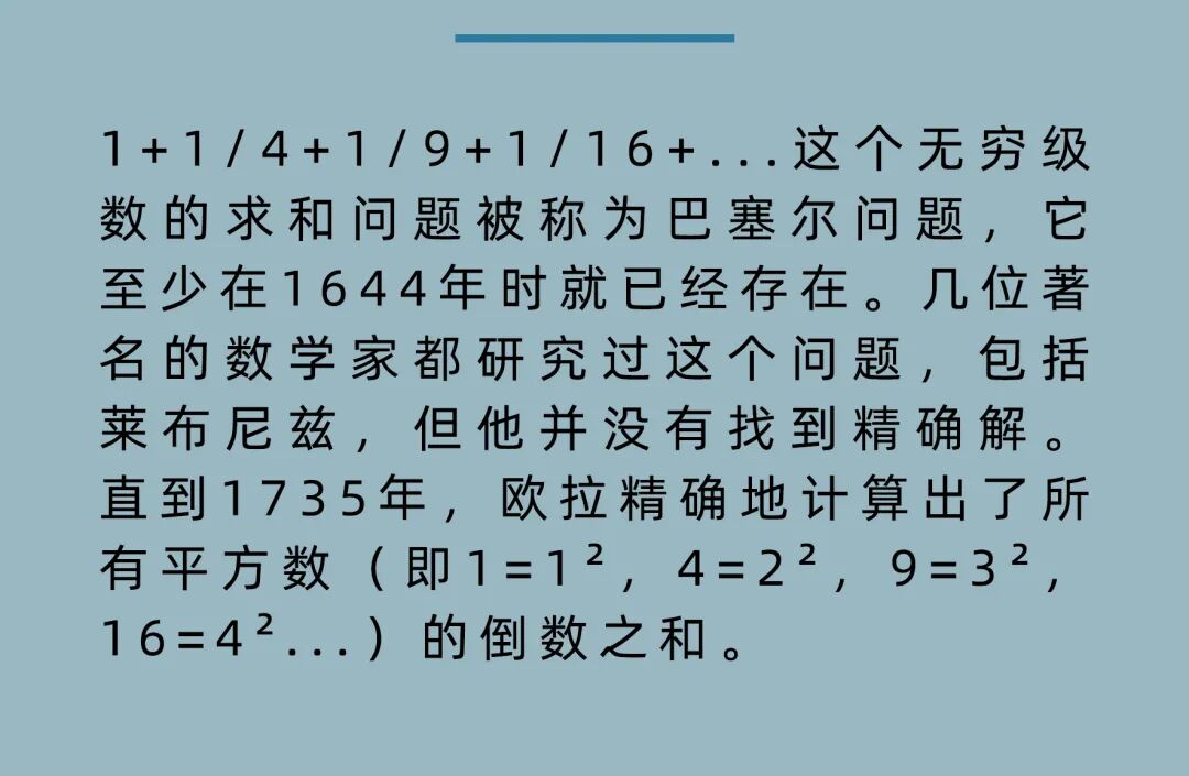 而当我们研究自然的其他方面时,会发现π其实无处不在。它不仅与每一个圆有关,还可以通过傅里叶级数和海浪或声波联系在一起。π也会在其他许多公式中出现(点击公式查看更多):
