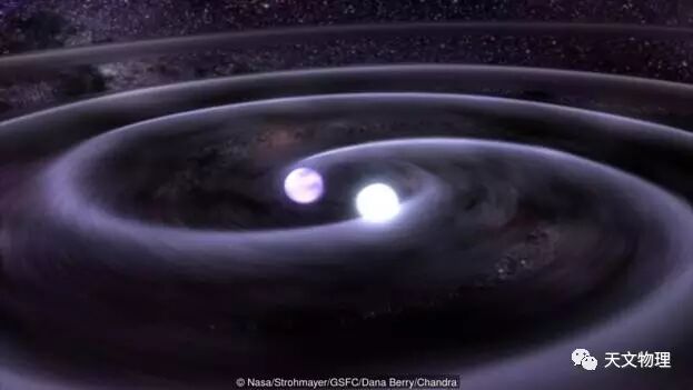 图为两颗密度极大的白矮星围绕彼此旋转。