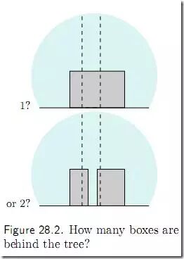 图中有多少个箱子?特别地,那棵书后面是一个箱子?还是两个箱子?还是三个箱子?还是.. 你可能会觉得树后面肯定是一个箱子,但为什么不是两个呢?如下图:
