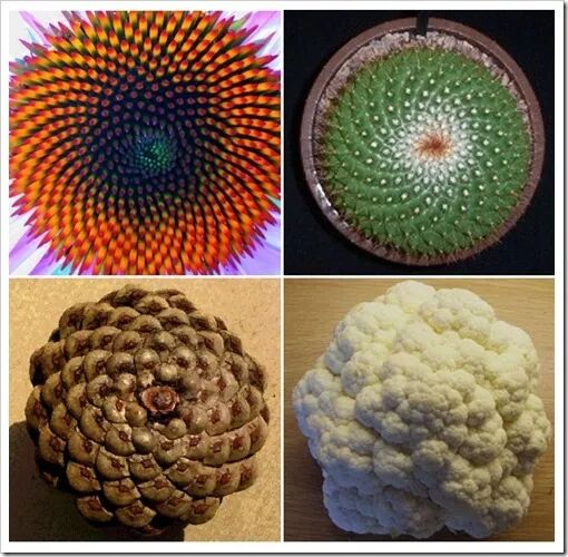这个数字必须极其精确,不然就会毁掉整个图样。往上数第二张图——那是137.6度,多了0.1而已。但自然界很明显抓住了这个数。向日葵当然不懂这背后的数学原理,但在自然选择的压力下它猜中了答案。