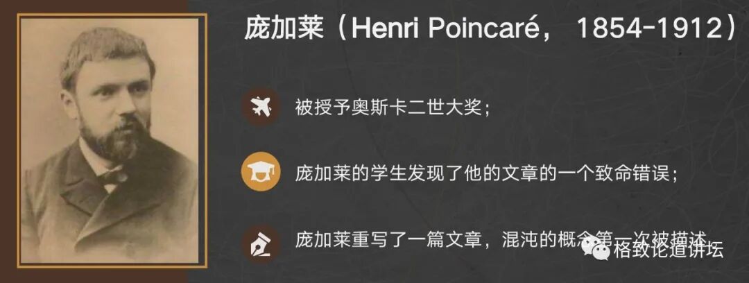 事情麻烦了,大奖居然颁给了发表错误文章的庞加莱。庞加莱开始意识到三体问题的复杂性,所以他重新写了一篇文章,里面首次提到了混沌现象。最后,评委会主席Weierstrass认为,尽管庞加莱没有解决三体问题,但因为重写的新文章非常重要,所以仍然决定把大奖颁给他。