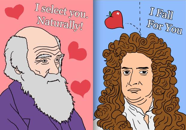 戴维·弗里德曼(David Friedman)用双关语来作为表白。大家都认识查尔斯·达尔文和艾萨克·牛顿,当把他们的科学成就用“情话”的方式表达出来的时候,你一定会会心一笑。