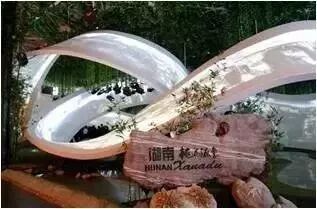 上海世博会的湖南馆“桃花源里·湘都(xiangdu)”,主体建筑外观采用了双莫比乌斯环扣造型,外表用纸装饰,远观如一尊巨大的动态雕塑艺术品。整个“魔比思环”就像展开的卷轴,环体上的影像组成循环流动的彩带,时而全景演播,时而滚动变化,时而回归为纯净的留白,给人以更多静思与遐想的空间。