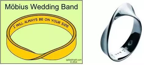 阿琳举起莫比乌斯环说:“老师,您所说的都有两面。可是,我这儿有张只有一面的纸!”话音刚落,那位哲学教授和全班同学都惊奇不已,阿琳自然很得意。从此,……。(懂点拓扑学不仅可以获物理学诺奖,还可以获得美人芳心!)