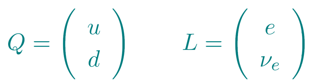 弱核力的SU(2)矩阵作用于什么?它必须是由标准模型的物质粒子组成的2-分量矢量。从周期表来看,一个明显的猜测是将夸克与夸克,电子与中微子配对