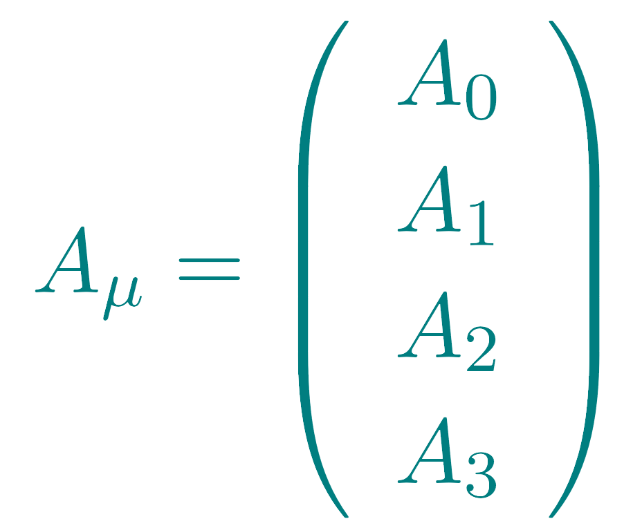 除了物质场之外,还存在力场。例如电磁力是用电场(E)和磁场(B)来描述的,它们可被统一成一个四维矢量——矢量势(Aμ):