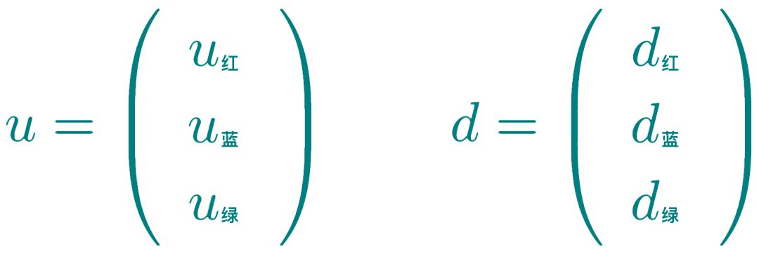 夸克的这一性质被称为色荷,描述它的理论称为量子色动力学(QCD)。这三种色可以排列成一个矢量,比如对上夸克和下夸克来说