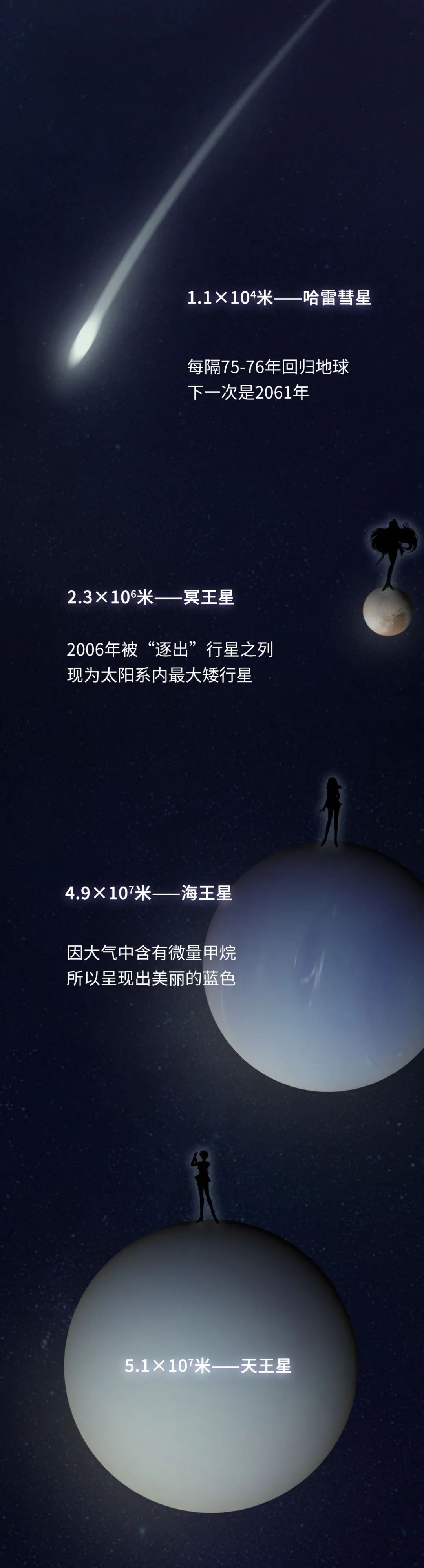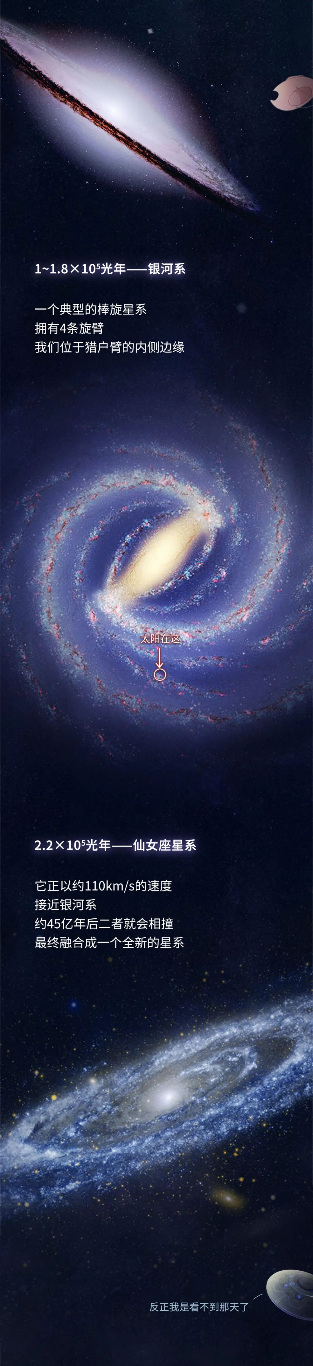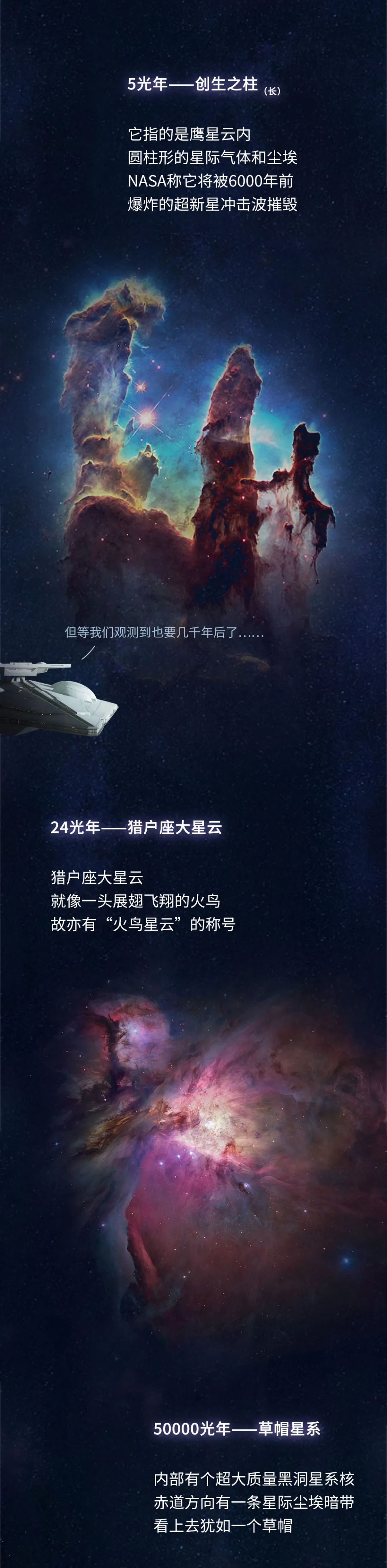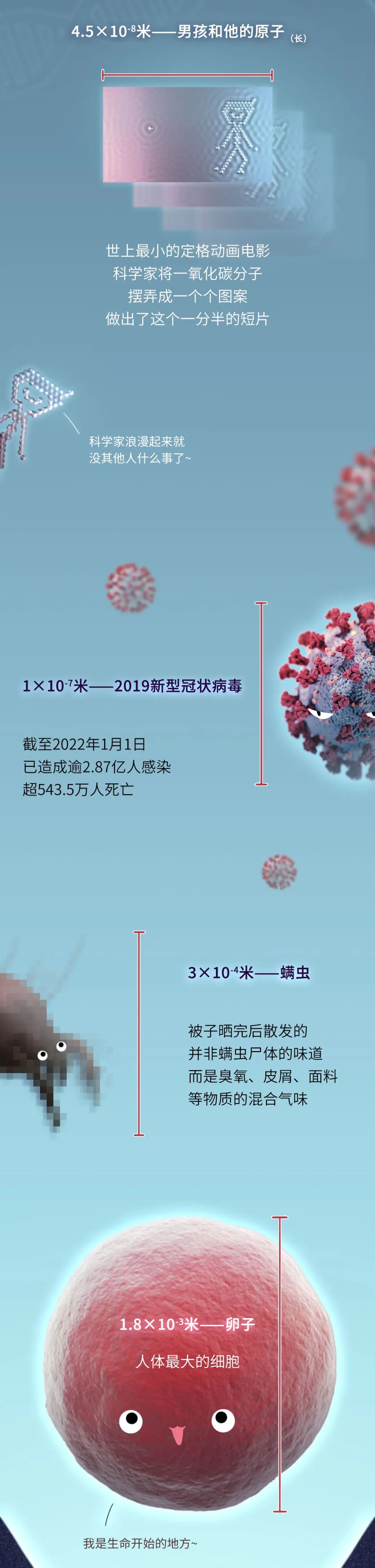 •当进入极致的微观世界,惠勒认为,不确定性原理可能意味着在足够短的距离和足够短的时间间隔内,时空的几何形状会发生波动。这些波动可能大到足以导致从宏观尺度上看到的平滑时空出现显著偏离,从而使时空具有“泡沫”特征。霍金认为这可能是破解用虫洞进行空间旅行的一个方向。 •上文提到的最大尺度的数据,也只是可观测宇宙的大小,那么真实的宇宙有多大呢?按照宇宙大爆炸理论,假设宇宙在爆炸后的10~37秒开始膨胀,那么理论上宇宙的尺度大约等于光速乘以它的年龄,最终的计算结果约为1.5×1034光年。 •从微观看到宏观,不禁让人慨叹:哀吾生之须臾,羡宇宙之无穷。人类自诩为地球之主,可纵览宇宙的尺度,我们也不过沧海一粟,仍有许多未知之物。但尽管我们可能永远无法一窥宇宙的全貌,也不妨碍我们怀揣好奇砥砺前行。毕竟,身处深渊,也总要有人仰望星空。