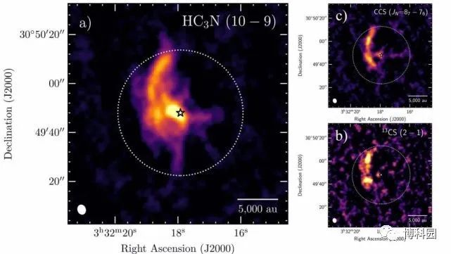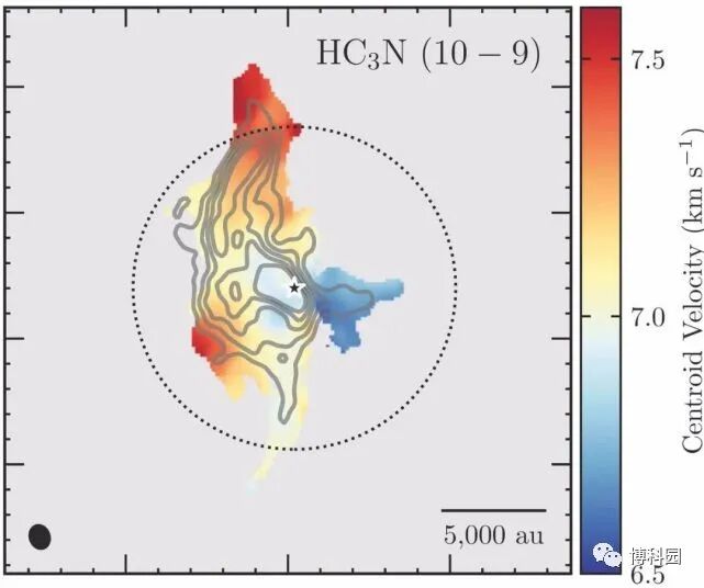 在原行星盘中心的年轻原恒星直接从原行星盘进食并获得质量。现在,天文学家首次在英仙座分子云中观察到了一条明亮的物质流,将包层的最外层连接到形成圆盘(原行星盘)内部区域。随着流光被双星系统消耗,帮助盘状区域重新补给更多的物质,母星云可以继续帮助年轻原生恒星和它们原行星盘的生长。领导这项研究的马克斯·普朗克地外物理研究所Jaime Pineda解释说:原行星盘形成的数值模拟通常集中在单个原星系统上。观测将这一想法更进一步,通过研究化学上新鲜的物质流,从很远的距离向下延伸到尺度上,预计在一对年轻的年轻原恒星周围会形成一个圆盘。天文学家们利用北方扩展毫米阵列研究了年轻的PER-EMB-2原恒星双星系统。该双星系统在过去的观测中表现出一些可变性或闪烁,暗示研究环境对小尺度恒星形成的影响可能是一个有趣目标。研究小组观察了几个分子,这使得天文学家能够测量气体运动,并发现沿着流光的物质流。从包层外部区域向下大约10500AU的距离,气体的位置和速度都与物质流从大到小自由下落的理论模型很好地匹配,证实了流光的动力学是由系统中密度最高的中心区控制。来自马克斯·普朗克地外物理研究所的合著者多米尼克·塞古拉-考克斯说:理论和观测并不经常如此清晰地匹配,我们很高兴看到望远镜图像试图告诉我们的这种确认,对流入内核物质质量的估计在0.1到1个太阳质量之间。这是形成密集恒星的致密云(大约3个太阳质量)中总质量的相当大一部分。传输带确实必须在相对较短的时间内,从外层区域带来化学上的新物质。在几乎是自由落体的情况下,如此大的新物质储藏库被清晰地识别出来,这是值得注意的。这清楚地表明,新物质可能会塑造年轻恒星系统中气体的形态和运动。生长和演化的原行星盘化学成分也将受到这一新现象的影响。该团队成员、马克斯·普朗克地外物理研究所主任保拉·卡塞利(Paola Caselli)总结道:让我们发现流光的分子有三个碳原子(HCCCN),在行星组装阶段,这些碳原子将可用于富集有机化学(在走向生物前化合物的过程中)。这种将物质运送到中部地区的新方式对年轻盘的形成和生长方式具有重要影响。然而,目前尚不清楚在年轻恒星系统的演化过程中,这一过程会发生的频率和时间有多长,因此需要对年轻原恒星进行更详细的观察。