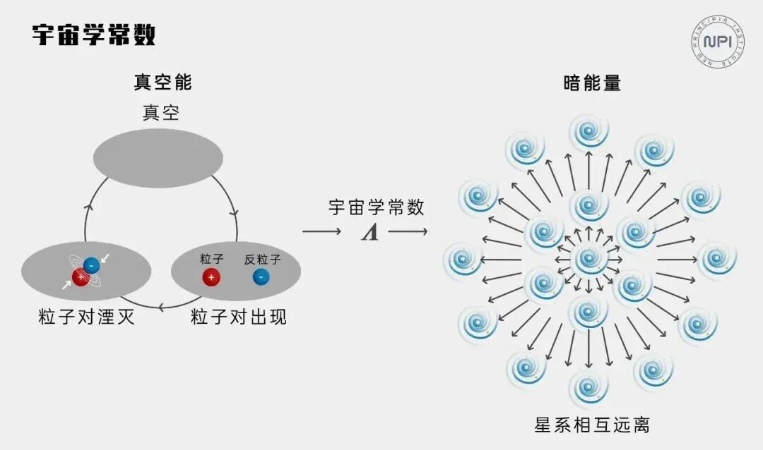 换句话说,它的主要成分源自真空的固有能,也就是真空能。根据量子物理学,真空并不空,而是充满了量子涨落。在真空中,虚粒子会不断地出现,仅持续非常短暂的瞬间就会再次消失。