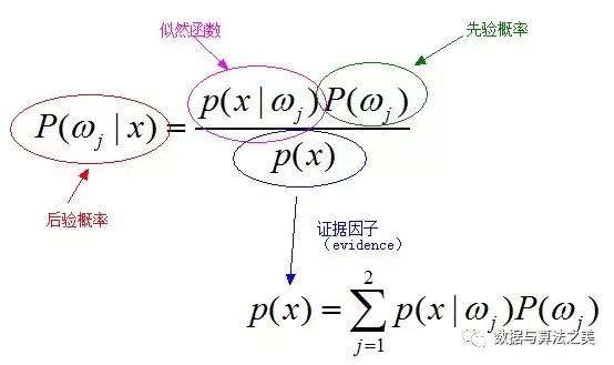 当然,上面的概率不容易直接求出,于是我们可以间接地计算它。利用贝叶斯公式并且省掉一个常数项,可以把上述公式等价变换成