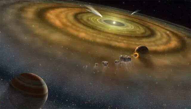 50亿年前,由于分子云核的引力坍塌而形成太阳系,形成了一个由气体和尘埃组成环绕太阳的圆盘(有时被称为太阳星云)。这个圆盘(原行星盘)最终被改造成一个行星系统,由一个单一的中心恒星太阳组成,周围环绕着内太阳系的四颗类地行星,外太阳系中的四颗巨大行星超出了“雪线”,以及许多较小的天体,包括小行星、卫星、矮行星和彗星。主要作者LLNL宇宙化学家托马斯·克鲁耶(Thomas Kruijer)说: